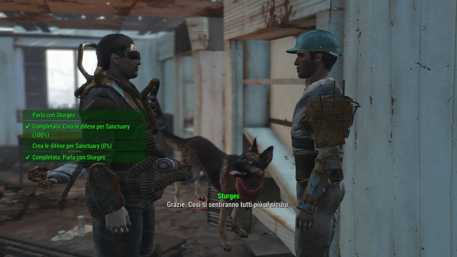 Da qui ho notato subito che nonostante Codsworth (il maggiordomo) di regola è capace di chiamarmi per nome, a VOCE, in realtà non esce altro che il silenzio. Nel doppiaggio italiano non sono presenti i vari, chennesò millemila, nomi con il quale il nostro amico d'avventura può chiamarci.