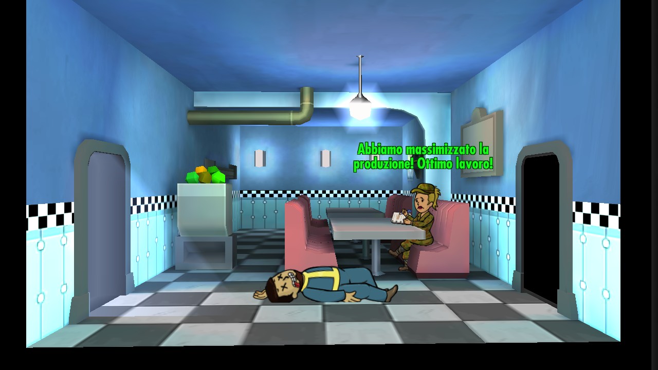 Abbiamo a malapena il tempo di vedere il Vault che la gente ci ficca in quello che sembra un tubone per disinfettarci eeeee...in realtà ci stanno ghiacciando con tanto di Martini. Veniamo così ibernati e passano anni ed anni, finché qualcuno non decide di farci uscire fuori dal drink.